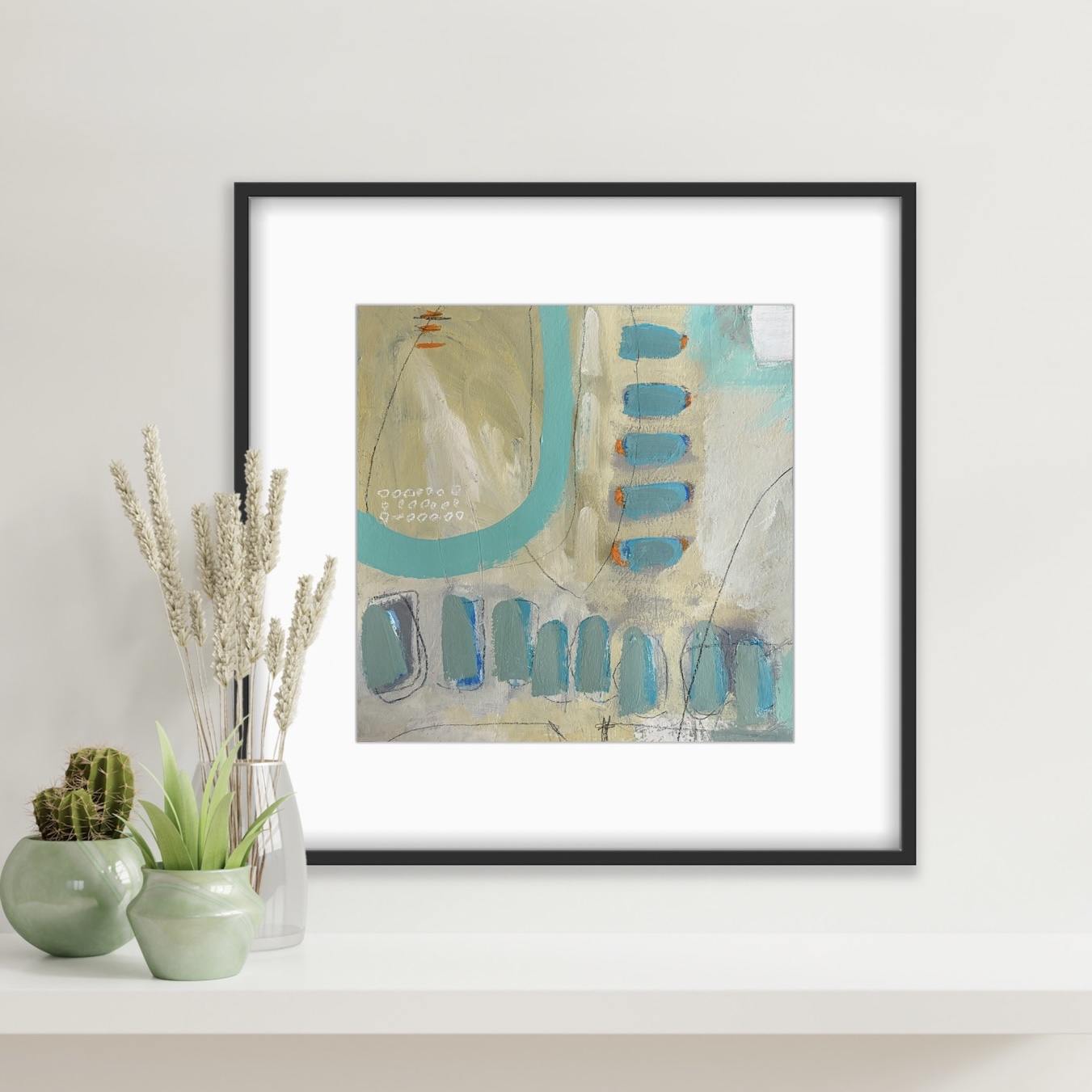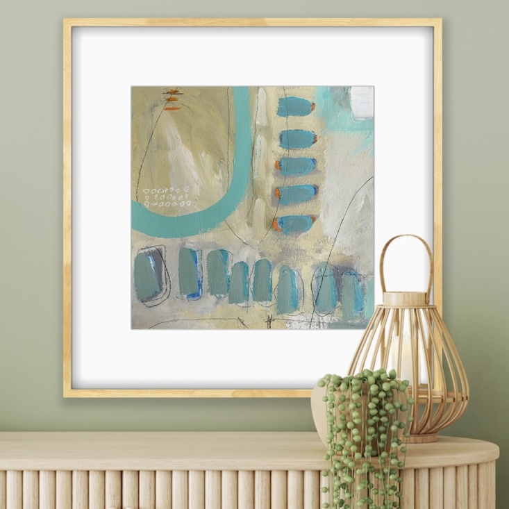 Acrylic on paper. 12 x 12 inches. Optional white or maple frame available.