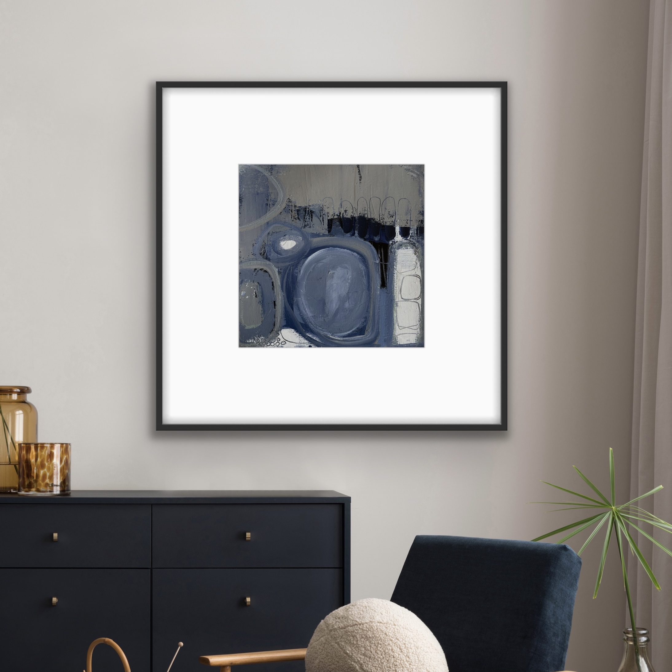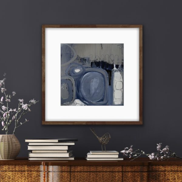 Acrylic on paper. 12 x 12 inches. Optional white or maple frame available.